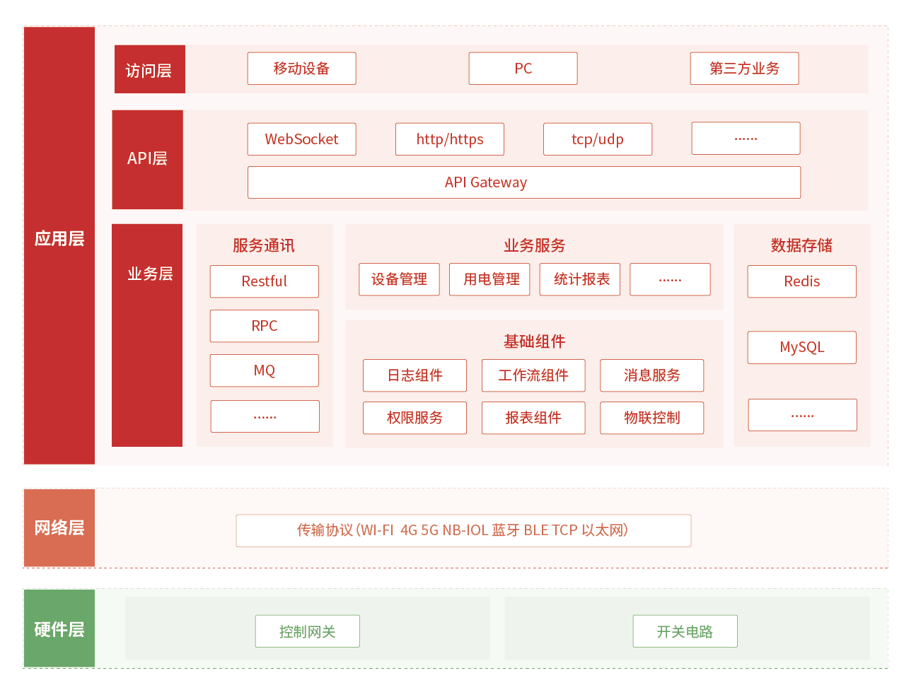 集“感、傳、知“于一體,采用智能終端作為末端感知設備,基于有線網絡、無線網絡、5G等網絡基礎設施,提供本地/遠程等方式、電腦/手機等終端對用電控制、安全、監測進行管理控制。