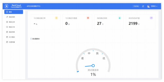 API自動化測試平臺包括測試覆蓋率、測試用例、測試記錄、API返回示例保存、測試計劃、測試結(jié)果、壓力測試、壓測變量。